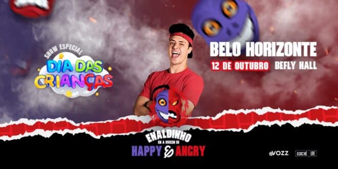 O fenômeno da internet Enaldinho chega a Belo Horizonte para celebrar o Dia das Crianças com um espetáculo no BeFly Hall, no dia 12 de outubro. Intitulada “A Origem de Happy/Angry”, a peça promete encantar toda a família ao misturar humor, ação, música, interatividade e efeitos especiais em uma experiência única.